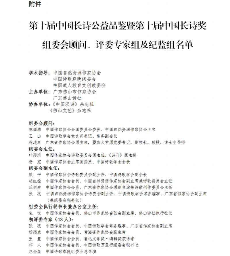 第十届中国长诗公益品鉴暨第十届中国长诗奖获奖名单今天在广东揭晓,著名诗人高凯、尚仲敏、木汀等33人分别荣获最佳成就奖、最佳文本奖、最佳新作奖和最佳新锐奖。 据中国自然资源作家协会诗歌委副主任、广东省作家协会副主席、本届长诗奖组委会秘书长张况介绍,第十届中国长诗公益品鉴暨第十届中国长诗奖由中国自然资源作家协会、中国诗歌春晚组委会、中国成人教育协会文创教委会携手广东佛山作协、广东佛山诗社共同举办。本届公益品鉴活动共收到来自全国32个省、自治区、直辖市及部分海外华文诗人的长诗作品共1129部(首),经组委会评委专家组资格审核、网络比对筛查和初评、终评,最终评定获奖长诗作品共33部(首)。张况说,第五届中国长诗奖获奖诗人中,不乏中国作家协会优秀儿童文学奖单篇佳作奖获得者高凯、封面新闻“2019年十大诗人奖”获得者尚仲敏、第九届“长征文艺奖”获得者木汀、中国人口文化奖获得者牛庆国、全国优秀图书奖获得者易飞、《诗刊》青年诗人奖获得者金铃子、中国石油作家协会创作成果一等奖获得者张洪波、第三届“中国女性文学”奖获得者胡茗茗、悉尼国际诗歌奖获得者李立、《诗刊》社国际诗酒文化大会现代诗歌奖获得者牧野、第四届星际诗人组织儿童诗歌奖十佳华语作品奖获得者张厚生、第六届“冰心散文奖”获得者许泽夫、天马散文诗奖获得者三色堇,新锐诗人月窗、仲彦、九鼎景观、武放等优秀诗人,以及新加坡华文诗人舒然等。 据悉,本届公益品鉴活动由中国作家协会全国委员会委员、中国自然资源作家协会主席陈国栋,中国诗歌学会党支部书记、常务副会长王山,广东省作家协会原主席、暨南大学原党委书记、副校长蒋述卓担任学术顾问,中国作家协会诗歌委员会原主任、《诗刊》原主编叶延滨,中国作家协会主席团委员、中国诗歌学会会长杨克担任组委会主任,中国作家协会诗歌委员会副主任、四川省作家协会原副主席梁平,中国自然资源作家协会副主席兼诗歌委主任胡红拴,广东省政府文史馆馆员、广东省作家协会原副主席丘树宏,广东省作家协会副主席、佛山市作协主席张况任副主任,诗坛名家叶延滨、杨克、梁平、丘树宏、臧棣、海男、胡红拴、陆健、程维、雁西、张况担任终评委,杨廷成、王童、祁人、李犁、周占林、屈金星、卢卫平、龚璇、方舟、包悦、雨桐、王长征等担任初评委。 组委会主任、著名诗人、文学批评家叶延滨认为,本届长诗获奖获奖作品内涵丰富、题材广泛、佳作频现、成果喜人,彰显了诗人们满满的历史文化自信,其中不乏以构建人类命运共同体、中华民族共同体意识、中国历史文化深厚底蕴、民族团结、社会进步、祖国统一,以及改革开放和人民群众日常生活为题材,既有彰显中华优秀传统文化,表现中国式现代化进程中我国乡村振兴、工商业发展、社会事业不断进步的宏大叙事,也有表现岭南历史人文、广东“百千万工程”、大湾区文脉的大器之作,体现了中国长诗写作丰富多元的表现手法。 据组委会主任、著名诗人杨克介绍,本届公益品鉴活动以习近平文化思想为指导,旨在更好地宣传贯彻二十届四中全会精神,坚持以精品奉献人民、用明德引领风尚,表彰诗人们在长诗写作领域所取得的阶段性成就,弘扬诗歌精神,为我国诗歌事业高质量发展鼓与呼,让中国长诗发出新时代之光,同时彰显粤港澳大湾区岭南文化根脉,展现新时代社会经济文化蓬勃发展的新气象和诗歌文化多元共生的写作特色。 组委会副主任、著名诗人丘树宏说,本届长诗奖获奖者中,既有全国儿童文学奖、中国人口文化奖、“长征文艺奖”、全国优秀图书奖、中国人口文化奖获奖诗人,也有来自祖国边疆少数民族地区和边远山区的诗人,同时还不乏来自社区村居基层、工矿企业的劳动者诗人、农民诗人,具有广泛的代表性,体现了公益性活动的纯粹性和诗歌写作的包容性。 来源:佛山市作家协会 | 编辑:风 笛 |