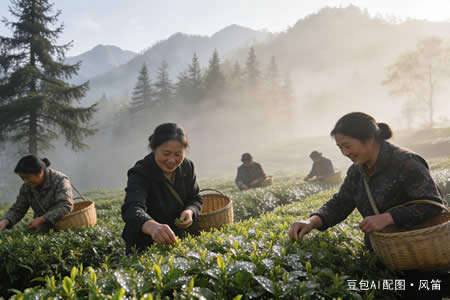 陕南茶语 作者:周宜章 晨雾还没散尽时,陕南的茶园就醒了。露水在茶尖上打盹,秦岭的风带着松涛掠过茶蓬,把昨夜积攒的清香抖落一地。挎竹篓的妇人踩着露水进来,指尖在茶丛间翻飞,像在弹奏一首只有草木能听懂的曲子。她们的山歌比晨雾更轻,缠在茶枝上,和那些刚冒头的雀舌芽一起,慢慢被太阳晒成琥珀色。 在陕南,茶是过日子的度量衡。紫阳的老茶馆里,铜壶总在火塘上咕嘟着,壶嘴冒的热气里飘着陈年茶垢的味道。穿蓝布褂的老汉们围坐八仙桌,粗瓷碗里的富硒茶喝得只剩残叶,话题却从春耕聊到了抗美援朝。掌柜的添水时不说话,只把壶嘴对碗沿一倾,琥珀色的茶汤便带着“咕嘟”声漫上来,惊起碗底几片打转的茶叶—— 那是山民们最自在的光阴刻度。 茶在陕南人的礼俗里扎得很深。娶媳妇要送 “三茶六礼”,茶饼裹着红布,和聘书一起摆在堂屋正中。老人们说茶树栽下就挪不得窝,就像姑娘嫁了人,要在婆家的土里扎根。娃娃开蒙那天,祖母会用新茶泡一碗蜜水,看着孙儿小口抿下去,眼角的皱纹里盛着笑:“喝茶要先苦后甜,念书也一样。” 端午的清晨,汉江两岸飘着粽叶与茶香。家家户户的灶上都蹲着铁锅,茶叶和鸡蛋在沸水里翻滚,蛋壳渐渐染成老黄色。捞出的茶蛋要在凉水里浸一浸,剥壳时能看见蛋白上印着细碎的茶纹,像谁把春山的脉络拓在了上面。孩子们揣着茶蛋跑过青石板路,蛋壳碰撞的脆响里,混着卖茶人的吆喝:“新摘的仙毫哟——” 秋雨打湿窗棂的午后,最宜煮茶。取汉中仙毫的嫩芽,投入砂铫,炭火在炉膛里明明灭灭。水沸时如鱼目跳动,茶叶在沸水里舒展腰肢,茶汤便有了翡翠的颜色。这时若有故人来访,不必寒暄,递过茶盏即可。看茶叶在盏中浮沉,听雨滴敲打着瓦当,那些说不出的心事,早被茶汤泡得淡了。 陕南的茶,从来不是孤立的叶片。它是秦岭的雾、巴山的土、汉水的泉,是采茶女鬓角的汗珠,是老茶师掌心的温度,是刻在青砖墙上的茶联,是飘在云端的采茶歌。当最后一缕阳光掠过茶园,暮色里的茶蓬还在轻轻摇晃,仿佛在回味这一天的光阴——就像陕南人,把日子泡在茶里,慢慢品出了甘醇。 审稿编辑:天山云海 | 核发编辑:风 笛 |