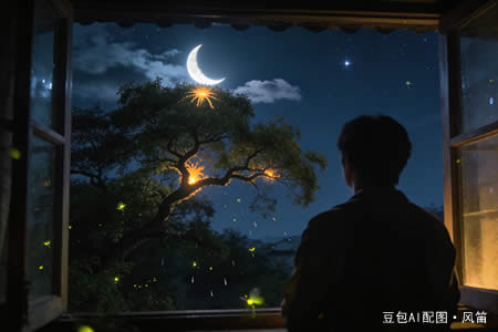 弯弯的月亮划在榆树顶