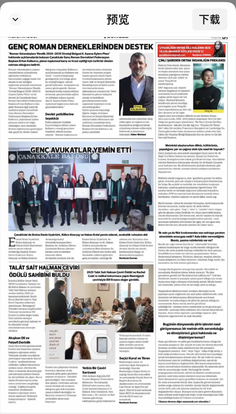 Çinli Şairden Ortak İnsanlığın Frekansı Nurduran Duman “Şiirin görevi dünyadan daha yüksek sesle bağırmak değil, ortak insanlığımızın hâlâ duyulabildiği başka bir frekans sunmaktır.” UYGARLIĞIN ORTAK DİLİ: ULUSLARARASI SÖYLEŞİ DİZİSİ 12 NURDURAN DUMAN Kalenin Sesi olarak, dünyanın farklı ülkelerinden şair, yazar ve başka alanlarda öne çıkan imzalarla yaptığımız söyleşi dizimizi, Çinli şair, editör ve yazar Yang Ke ile sürdürüyoruz. 1957 doğumlu şair, kişisel tarihsel imgelemi ve hakikati aramadaki ısrarlı iradesiyle çağdaş şiirde özgün bir hat çiziyor. Kentsel deneyim keşifleriyle şiirsel öznelliğe yeni kapılar açan Yang Ke; Çince yayımlanmış on dört şiir, dört deneme ve bir toplu yapıtın yanı sıra yabancı dillerde on şiir kitabını dünya okuruna sundu. 1998–2019 yıllarını kapsayan Yeni Çin Şiiri Yıllığı'nın genel yayın yönetmeni. "Bir Narın İçinde Gördüm Anavatanımı" adlı şiiri Çin Şiir Ağı'nca "Yüzyılın On Temel Şiiri"nden biri seçilen, Francesco Giampietri ve Cambridge Xu Zhimo gibi ondan fazla uluslararası ödülün sahibi olan Şair hâlen Çin Yazarlar Birliği Başkanlık Kurulu üyesi ve Çin Şiir Derneği Başkanı. Metninizi oluştururken diliniz, kültürünüz, yaşadığınız yer ve çağınız sizin için nasıl bir kaynak? Çince yazıyorum; ama içinde yaşadığım Çince soyut bir dil değil. İnci Nehri Deltası’nın nemini, Güney Çin Denizi’nin tuzunu, Guangzhou’nun sokak gürültülerini taşır. Ana dilimin üzerine Kantonca dokunuşlar sinmiş; bir de klasik Çincenin uzun hafızası var. Bu dil katmanları jeolojik tabakalar gibi: yazarken her dizede, yüzeyin altında çınlayan yankılarını duyuyorum. Kültürel olarak Lingnan’a, yani “geçitlerin güneyi”ne aidim; göçle, ticaretle, pek çok rüzgârın buluşmasıyla biçimlenmiş bir bölge. Bu açıklık ve melezlik, dar kimliklere kuşkuyla bakmayı; uzaktan geleni karşılamayı öğretti bana. Öte yandan kıtlık ve ideolojik yoğunluk yıllarında büyüdüm; ardından 1978’ten sonraki hızlı dönüşüme tanıklık ettim: kentleşme, tüketim toplumu ve şimdi dijital, sanal çağ. Bütün bunlar—lehçe ile standart konuşma, yerel manzara ile küresel sarsıntılar, kadim şiirler ile akıllı telefon ekranları—şiire girer. “Çağ”ı, “ulus”u, “mekân”ı birer slogan gibi ele almam; onları bedenin ve ruhun üzerindeki basınç olarak düşünürüm. Şiir benim için, tek bir hayatın bu büyük kuvvetlerle nasıl kesiştiğini kaydetmenin yoludur—ama ayrıntının şefkatini yitirmeden: bir ağaç, bir çocuğun sesi, Beihai’den bir inci, ekranda süzülen bir haber satırı. İlk esin ya da fikir kıvılcımından son noktaya yaratım sürecinizin omurgası nedir? Asla ödün vermediğiniz ilkeniz, yazma rutinleriniz var mı? Bende şiir çoğu zaman küçük bir “rahatsızlık”la başlar: yakamı bırakmayan bir imge, kulak misafiri olduğum bir tümce, bir anda arşivde kalmayı reddeden bir tarih parçası… Genellikle bunu hızla not ederim; yargılamadan. Sonra dinlenmeye bırakırım. Yürürüm, okurum, seyahat ederim, başka disiplinleri ve dilleri dinlerim—felsefeyi, fiziği, tarihi. Şiir karanlıkta, bir kök sistemi gibi büyür. Taslağa döndüğümde omurga hep aynıdır: dürüstlük ve zorunluluk. Kendime tekrar tekrar sorarım: “Bu dize gerçekten gerekli mi? Bu kelime hak edilmiş mi?” Çok kez düzeltirim; bazen el yazısıyla, yalnız güzel olduğu için orada duran ama doğru olmayan süsü kesip atarak. Müzik benim için önemlidir: yalnız ritim ve ses değil, şiirin iç soluğu. Vazgeçilmez ilkelerim basit: modaya, ideolojiye ya da piyasaya uyum sağlamak için asla yalan söylememek; canlı deneyimi saf dekorasyona dönüştürerek ona ihanet etmemek; ve suskunluğun da şiirin bir parçası olduğunu unutmamak. Rutin olarak, kentin gürültüsü çekildiğinde—sabahın erken saatlerinde ya da gecenin geç vaktinde—yazmaya daha yatkınım; dil o zaman daha berrak duyulur. Ama rutine tapmam; uyanıklığa taparım. Şair, dünyanın çağrısına her an açık olmalıdır. Bugünün dünyasında şiirin işlevini nasıl görüyorsunuz; bir metnin etik sorumluluğu ve dönüştürücü gücü hakkında ne düşünüyorsunuz? Yang KeHızın, gürültünün ve saldırgan basitleştirmenin olduğu bir zamanda yaşıyoruz. Şiir, küçük ve inatçı bir direniş biçimidir. Anlamın yeniden soluk alabilmesi için dili yavaşlatır. Sloganların yalnızca "evet" veya "hayır" talep ettiği yerde, o belirsizliği yeniden kurar. Umudu yitirmeden karmaşıklığın içinde konaklamamıza olanak tanır. Bir şiir belki bir savaşı durduramaz veya bir politikayı değiştiremez, ancak bir kişinin içsel iklimini değiştirebilir. Bizi duyarsızlaşmaktan, zulmü normal kabul etmekten alıkoyabilir. Bu anlamda şiirin etik bir sorumluluğu vardır: Herhangi bir tarafın propagandası olmamak, nefreti ve klişeleri yinelememek; güçsüz, uzak veya sessiz olanların onurunu silmemek. Şiirin dönüştürücü gücü genellikle mahrem ve sessizdir. Zor bir anda anımsanan tek bir dize, başka bir görme biçimini aniden açığa çıkaran bir metafor; bunlar küçük değişimlerdir ancak tarih, pek çok yaşama yayılmış bu tür içsel değişimlerden oluşur. İnanıyorum ki şiirin görevi dünyadan daha yüksek sesle bağırmak değil; ortak insanlığımızın hâlâ duyulabildiği başka bir frekans sunmaktır. Şiir, özellikle günümüzde barış inşasına ve kültürlerarası anlayışa ne gibi katkılarda bulunabilir? Biz, şairler dünya barışı için ne yapabiliriz? Şiir, taşınması en kolay sanatlardan biridir. Bir şiir sınırları küçük bir kitapta, ekrandaki bir çeviride, hatta bir gezginin taşıdığı bellekte aşabilir. Resmi belgelerin aksine, bir bayrakla gelmez; in