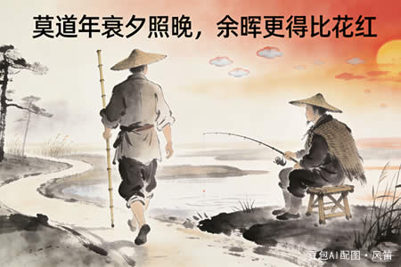 逍遥路上朝行客,淡定滩头暮钓翁。