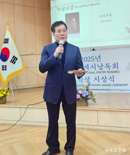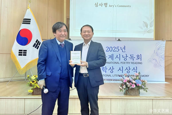 10月25日,“第七届2025水原KS国际文学奖暨国际诗歌节”,在韩国水原市华城行宫路、八达区南昌洞工坊街及首尔市“文学之家.首尔”隆重举行,中国诗人远岸荣获本届KS国际文学奖·特别奖。 活动第一部分,来自中国、意大利、法国、匈牙利和韩国二十多位诗人参加了水原市南昌洞“诗歌胡同”揭幕仪式和“汉德井”净化仪式。南昌洞胡同两边展示着多个国家诗人们的佳作,吸引了众多游客驻足。诗人们现场互动交流,各自发表对诗歌创作、诗歌精神的独特见识。诗人们随后还拜访了当代跆拳道泰斗姜信哲,体验韩国传统武学艺术臻味,参悟文武融通秘境。 “诗歌胡同”剪彩仪式 “诗歌胡同”参观纪念照 左崔东镐主席,右远岸诗人,在远岸诗歌纪念碑前合影 与跆拳道泰斗姜信哲合影 活动第二部分移至首尔市“文学之家.首尔”举行“国际诗歌节暨国际文学奖颁奖典礼”。现场进行了国际文学奖评审结果公布、颁奖仪式、国内外诗人诗歌朗诵。中国诗人远岸获第七届KS国际文学奖特别奖。韩国著名诗人、荣誉教授金珠丝宣读远岸获奖词:“对生命本质的精湛探索,捕捉人类存在的意义,他的诗蕴含着希望与反思,给读者留下持久的共鸣。”韩国文学家理事会理事长、KS国际文学奖评委会主席崔东镐为远岸颁奖,著名汉学家、翻译家、韩国外国语大学荣誉教授朴宰雨做了精彩点评。 左崔东镐主席,右远岸诗人 评委及同届获奖者 远岸在颁奖典礼上向“KS国际文学奖”评委会和崔东镐主席致谢,感言“诗人既要洞察、抚摸人类的疼痛和苦难,更要拥抱、亲吻生命的美好和精彩。这世界已经很冷、很无奈,诗人就应该负有更多的良知、勇气和使命:让自己的诗行多些温暖、多些高贵、多些神秘,让热爱诗歌的人们抵抗黑暗时自带光明,穿越寒冷时心有火把,直面丑陋、邪恶、暴虐时成为鼓手、战士、骑士!” 远岸随后朗诵了他的获奖作品: 与天涯