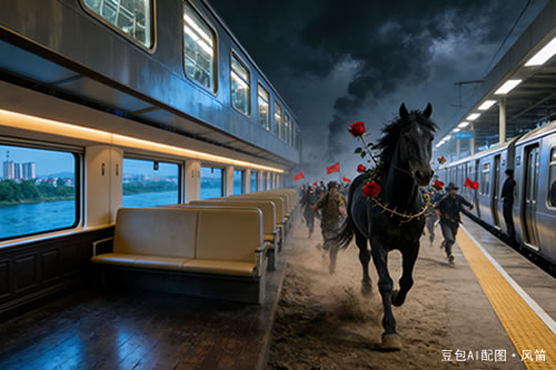 全诗开篇两句即构建了独特的现实与回忆叠在一起的感觉。“高铁”代表现代性、速度与线性时间;“青春驿站”则将时间空间化,青春成为可抵达的站点。更精妙的是第二句,“一列火车开在另一列火车里”;一列火车在另一列火车内部行驶,这不仅是物理上的不可能,更是心理现实与记忆结构的绝佳隐喻。现实的列车承载着记忆的列车,当下的旅程包含着过去的旅程。两个“火车”超视距意象的出现,打破了单一的时空逻辑,创造出超现实的诗歌空间。