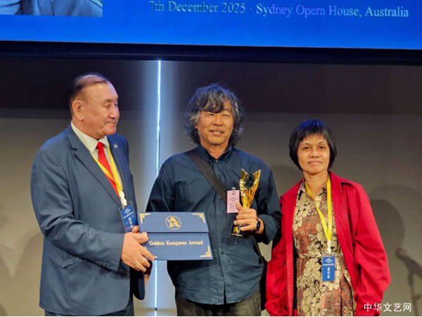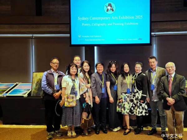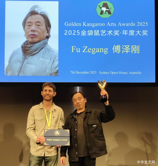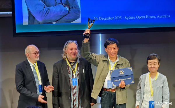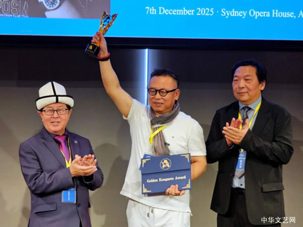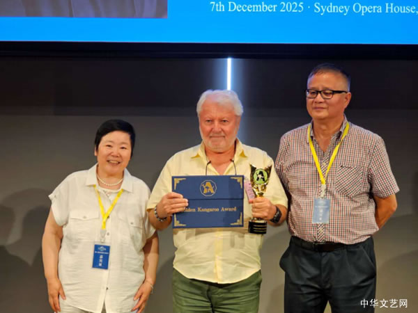 由澳大利亚艺术界联合会主办、国际诗人笔会协办的“2025悉尼当代艺术展·诗书画展”,2025年12月7日在澳大利亚悉尼歌剧院举行。来自美国、中国、新西兰、哈萨克斯坦、吉尔吉斯斯坦、越南和澳大利亚的诗人、艺术家黄翔、David Musgrave、黄亚洲、Sultan Catto、Doc Drumheller、Bauyrzhan Zhakyp、Duken Massimkhanuly、Atantay Akbarov、Ilia Uzunoski、傅泽刚、何亚兰、凌云、张仲衡、秋潇雨兰等30多位诗人、艺术家,展出了他们的绘画、书法作品和诗集。120多位诗人、艺术家参观展出。 “2025悉尼当代艺术展·诗书画展”评出“2025金袋鼠艺术奖”。中国艺术家傅泽刚、何亚兰、旅澳艺术家凌云荣获年度大奖,澳大利亚艺术家伊利亚·乌兹诺斯基、张仲衡、中国香港画家林琳荣获绘画奖,美国艺术家黄翔、中国艺术家黄亚洲荣获书法奖,中国诗人曹波、倮倮、王桂林荣获诗歌奖。 诗书画展入口 多国嘉宾参观诗书画展后留影 澳大利亚文学艺术联合会在悉尼歌剧院隆重举行了2025金袋鼠艺术奖颁奖典礼,为获奖诗人、艺术家颁发获奖证书和奖杯。颁奖典礼由澳大利亚艺术界联合会执行主席布文主持,国际诗人笔会副秘书长王桂林就本次展出致辞。他说,在东方与西方、传统与当代的交汇处,艺术始终是一座无声的桥梁,承载着人类共通的情感与思想。今天我们齐聚悉尼,以“诗书画”这一东方美学的核心脉络为媒介,开启一场跨越国界、跨越时空的文明对话。诗以言志,书以载道,画以状物与抒怀。三者同源共生,不仅凝练为东方艺术精神中独特的意境与风骨,也展示了世界和人类或张扬或潜隐的心绪与风采。本次诗书画专场并非对传统的简单复刻,而是以当代视角重新解读人类数千年文脉。诗人和艺术家们以笔为舟,以色为海,在纸张与画布的方寸间航行,既追寻着“画中有诗”的古典理想,亦回应着全球语境下的文化身份探索。展出的每一件作品,皆是创作者与时空的私语,亦是面向世界的宣言。它们或是将文字的解构重组为视觉诗篇,或是用水墨丹青渲染出都市的呼吸,又或是在留白处藏匿星际的密语。这些作品在悉尼港的海风中,与南半球的星空碰撞,已然激荡出超越文化藩篱的共鸣。 此专场既是世界人文精神的当代延续,更是国际艺术图景中的重要拼图。当东方的“写意”与西方的“表现”彼此凝视,当古老的“笔墨”与当代的“观念”相互渗透,我们得以窥见人类精神世界的丰赡与富饶。 澳大利亚艺术界联合会执行主席布文主持颁奖仪式 安德鲁·门肯博士为傅泽刚颁奖 克里斯·约翰逊、逯天峰为何亚兰颁奖 Patrick McGowan、行悦为凌云颁奖 高音博士、唐培良为Ilia Uzunoski颁奖 Bauyrzhan Zhakyp院士、DAM NGOC LINH为张仲衡颁奖 Duken Massimkhanuly、LUONG Nhu Y为林琳颁奖 Duken Massimkhanuly、何与怀为黄翔颁奖 Sultan Catto、Doc Drumheller和施国英为黄亚洲颁奖 Atantay Akbarov、陆文涛为倮倮颁奖 Sayat Kamshyger、西贝为王桂林颁奖 Sultan Catto为曹波颁奖 颁奖典礼首先颁发年度大奖。纽卡斯尔大学安德鲁·门肯博士为中国艺术家傅泽刚颁奖,作家克里斯·约翰逊和逯天峰会长为中国艺术家何亚兰颁奖,作家、诗人Patrick McGowan和悉尼雨轩诗社荣誉社长行悦为旅澳艺术家凌云颁奖。 随后颁发了绘画奖、书法家和诗歌奖。纽卡斯尔大学高音博士和悉尼华语作家协会会长唐培良为澳大利亚艺术界伊利亚·乌兹诺斯基颁奖,哈萨克斯坦科学院院士Bauyrzhan Zhakyp和越南诗人DAM NGOC LINH为澳大利亚艺术界张仲衡颁奖,国际诗人笔会执委会委员Duken Massimkhanuly和越南诗人LUONG Nhu Y为中国香港画家林琳颁奖。 国际诗人笔会执委会委员Duken Massimkhanuly和澳大利亚华人文化团体联合会召集人何与怀为美国艺术家黄翔颁奖,国际诗人笔会副主席Sultan Catto、Doc Drumheller和澳大利亚新南威尔士州华文作家协会创会会长施国英为中国艺术家黄亚洲颁奖。 国际诗人笔会执委会委员Atantay Akbarov和澳大利亚新南威尔士州华文作家协会会长陆文涛为中国诗人倮倮颁奖,国际诗人笔会副总干事Sayat Kamshyger和澳大利亚诗人西贝为中国诗人王桂林颁奖。 中国诗人曹波未能出席颁奖典礼,澳大利亚文学艺术联合会于12月6日邀请国际诗人笔会副主席苏尔丹·卡托提前为他颁奖。 供稿:组委会 | 编辑:牧 野 |